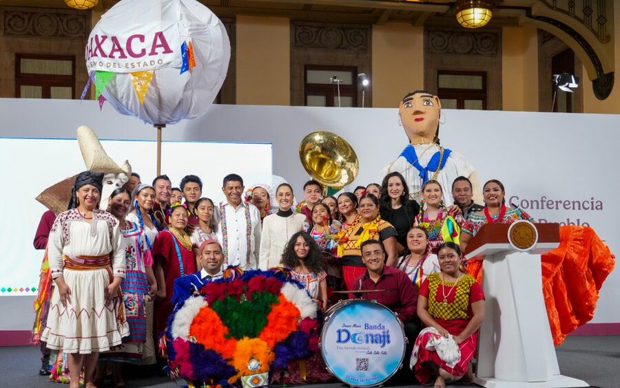 La fiesta y el color de la Guelaguetza 2025, visitaron la conferencia matutina: “La mañanera del pueblo” de la Presidenta Claudia Sheinbaum Pardo, para invitar a las mexicanas y los mexicanos a ser parte de esta celebración, que se realizará en Oaxaca a partir del 21 de julio, y que representa un compromiso colectivo que teje redes entre los pueblos de dicha entidad.