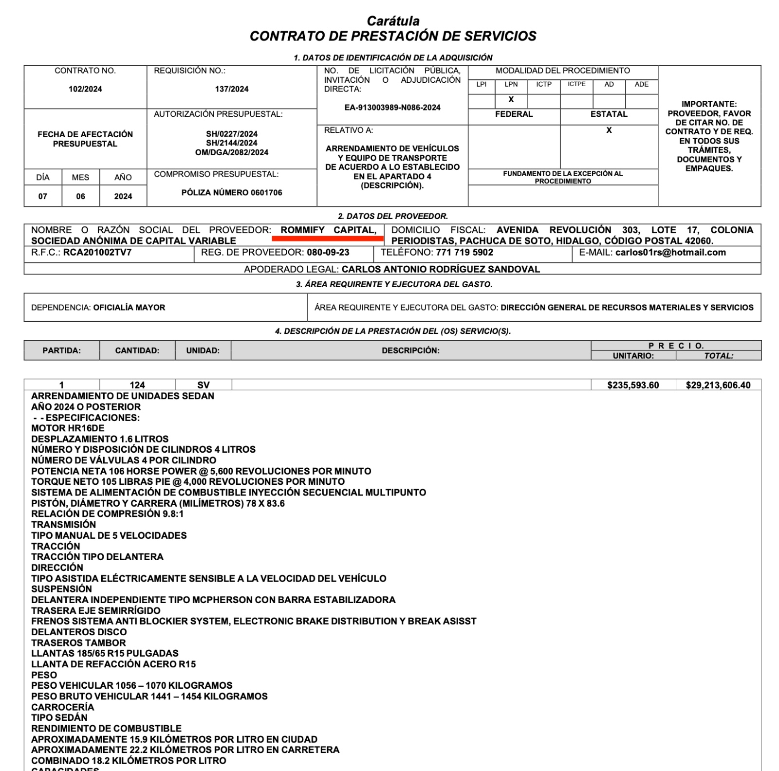 La otra propuesta fue presentada por la citada Rommify Capital SA de CV, empresa hidalguense con domicilio en Zona Plateada, Pachuca de Soto, y que tiene un amplio historial de contratos recientes en Hidalgo con Oficialía Mayor, DIF estatal, STCH y municipios.