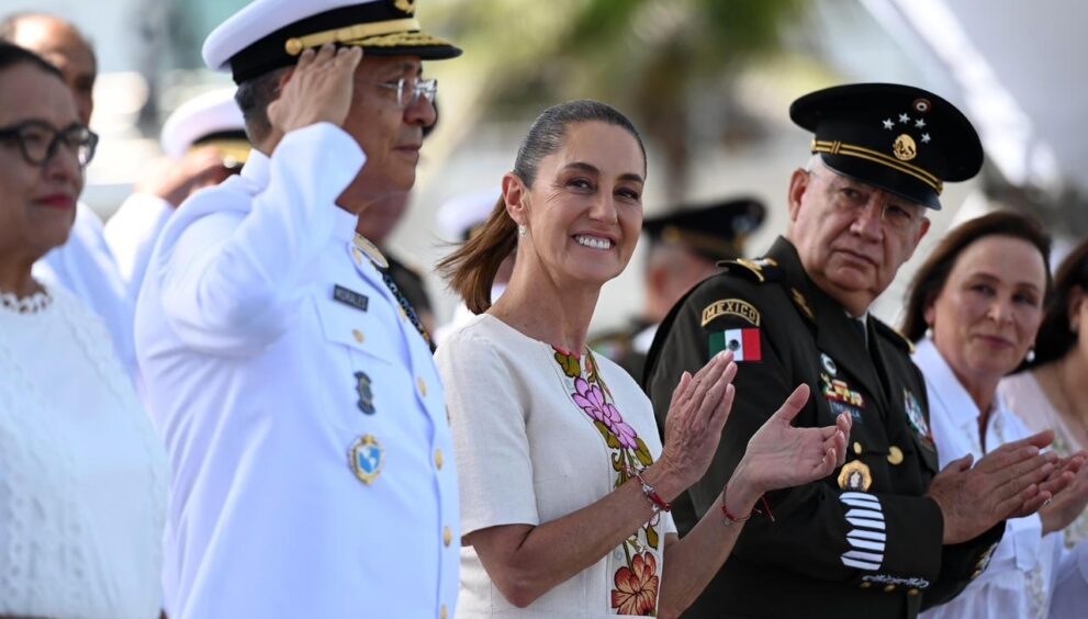 “La soberanía no es herencia fácil ni dádiva pasajera, la soberanía se conquista, se protege y se defiende día tras día. Y para ello, para defender la soberanía se necesitan valores, en las personas y en las instituciones. Las Fuerzas Armadas mexicanas las tienen, el honor que obliga a vivir con rectitud y a saber que cada acción representa México; la lealtad, que significa fidelidad absoluta al pueblo y a la patria; el deber, que empuja a cumplir la misión sin vacilación; el patriotismo, que es amor a la nación expresado en entrega y sacrificio; y la honestidad, que es la base que da sentido y fuerza a todos los demás valores, porque sin ella nada perdura”, destacó.