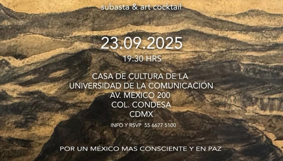 - La subasta tendrá lugar el próximo martes 23 de septiembre a las 19:30 hrs en la Casa de Cultura de la Universidad de la Comunicación. (Av. México 200, Col. Hipódromo Condesa, CDMX).