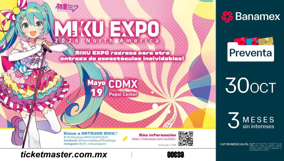 Prepárate para vivir una experiencia única donde la música, la tecnología y la cultura japonesa se fusionan en un solo espectáculo. La incomparable Hatsune Miku, la estrella virtual más famosa del planeta, llega al Pepsi Center para ofrecer un concierto inolvidable el próximo 19 de mayo de 2026. Con proyecciones en 3D, un show visual de última generación y la energía de miles de fans cantando al unísono, esta presentación promete ser el encuentro donde el futuro y la emoción conectan.
