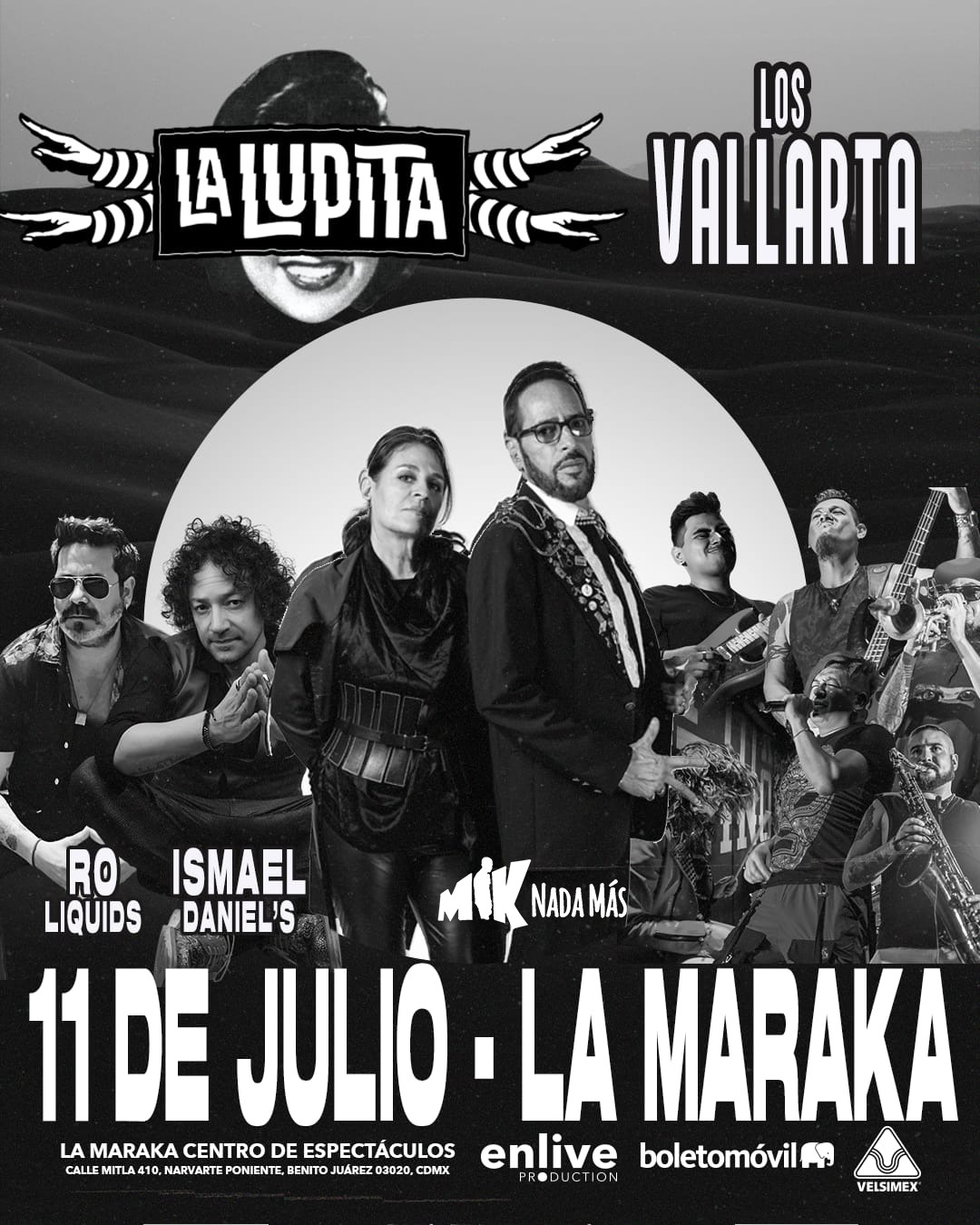 El próximo viernes 11 de julio de 2025 partir de las nueve de la noche, el escenario de La Maraka, uno de los recintos más emblemáticos de la Ciudad de México, será testigo de una noche memorable, poderosa y profundamente simbólica para el rock nacional. La Lupita, agrupación legendaria que ha desafiado los límites del género desde los años noventa, compartirá escenario con Los Vallarta, un proyecto de alto voltaje liderado por Adrián Vallarta —baterista y fundador de Los Estrambóticos—, en una velada que también contará con invitados especiales como Ro de Liquits, Ismael de Los Daniels y el acto emergente Mik Nada Más, integrado por Mick Cortez y Ricardo Sánchez «Richie in The House», quienes vienen sacudiendo la escena urbana con una propuesta irreverente y provocadora. El evento es organizado pro la promotora EnLive, una de las promotoras más importantes de la nueva generación. Boletos disponibles en el Sistema Boletomovil y en taquillas del inmueble.