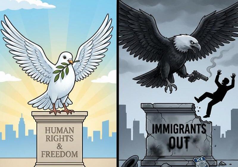 #Internacional (Multimedia) Viñeta: Dos caras Staff El Centro / 22 horas febrero 12, 2026 1 min read Ideal vs. Realidad: Las dos caras de los derechos humanos en Estados Unidos Share: