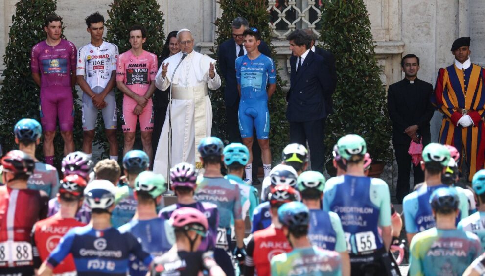 Papa León XIV saludó a los ciclistas del Giro de Italia.