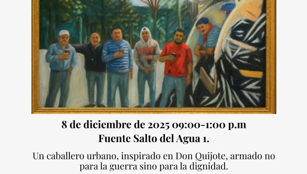 La obra plástica se ofrece como reconocimiento a los guardianes urbanos, el personal de limpieza, personificados como caballeros urbanos inspirados en Don Quijote y armados para la dignidad.