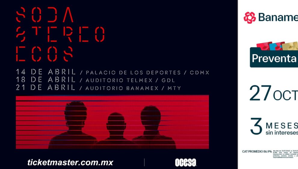 El año 2026 pasará a la posteridad para recordarnos que hay conciertos que no se escuchan: se habitan, se viven. Tras ocho fechas agotadas en Argentina, más de 100 mil boletos vendidos y un cúmulo de emociones contenidas, la leyenda del rock, Soda Stereo, anuncia su regreso a México con tres fechas: 14 de abril, Palacio de los Deportes – CDMX, 18 de abril, Auditorio Telmex – GDL y 21 de abril en el Auditorio Banamex, MTY.